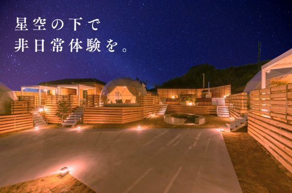 温かみあるドームテント、サウナ、星空、焚き火。